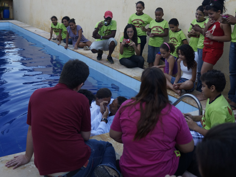 Foram nove pessoas que “morreram para o mundo” e nasceram para Cristo. Após o batismo houve um maravilhoso momento de descontração na piscina.
